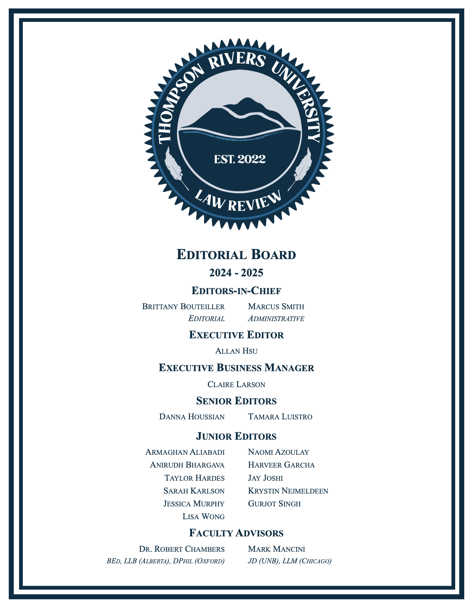 Editorial Masthead
